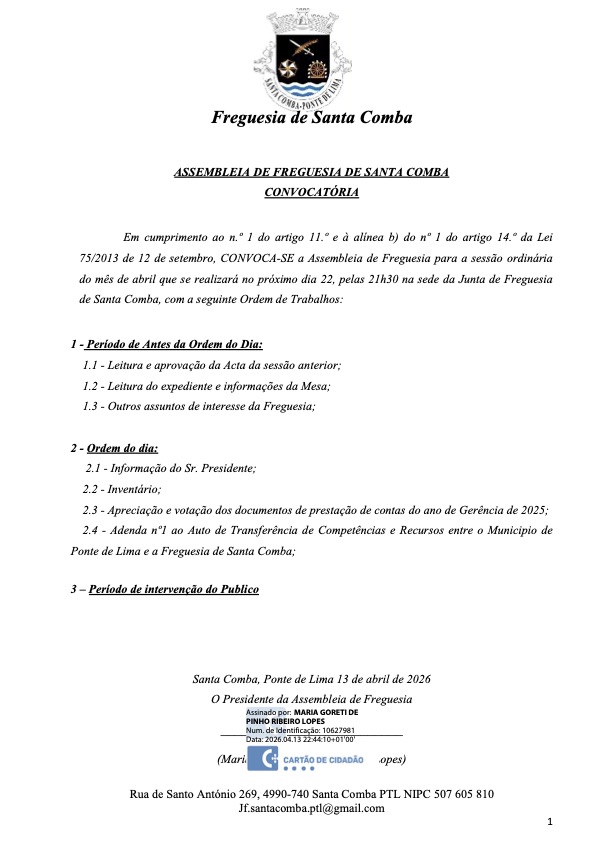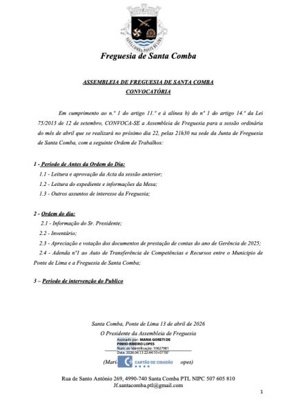 © 2026 Junta de Freguesia de Santa Comba. Todos os direitos reservados | Termos e Condições